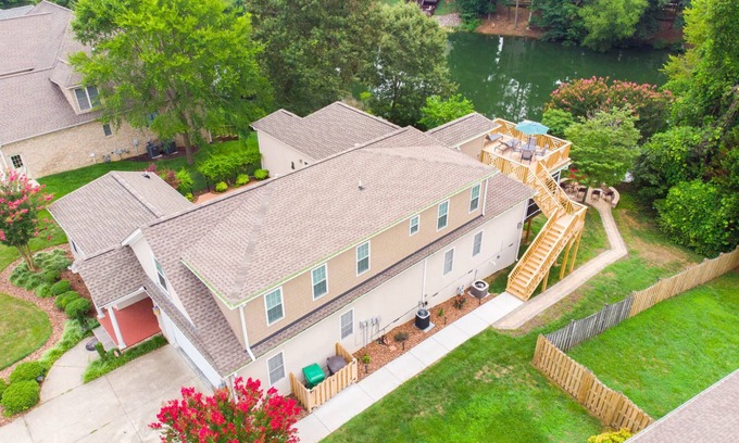 Enter from The Sky Deck, a 3 story high deck. 2 bed, 2 bath, 1000 square ft space with full kitchen, living room, dining room & laundry. All new furnishings/appliances. No shared space. Complete privacy. Professionally decorated. Newly added lighted makeup mirrors and full length mirrors in each bathroom/bedroom. Stone patio on lake. 5 miles to Furniture Market and High Point Hospital. 10 miles to Greensboro Coliseum! Built in 2019 above my home. No drugs, including marijuana, allowed anywhere on premises. No smoking, vaping and e- cigarettes inside. Parties and additional guests are not allowed.