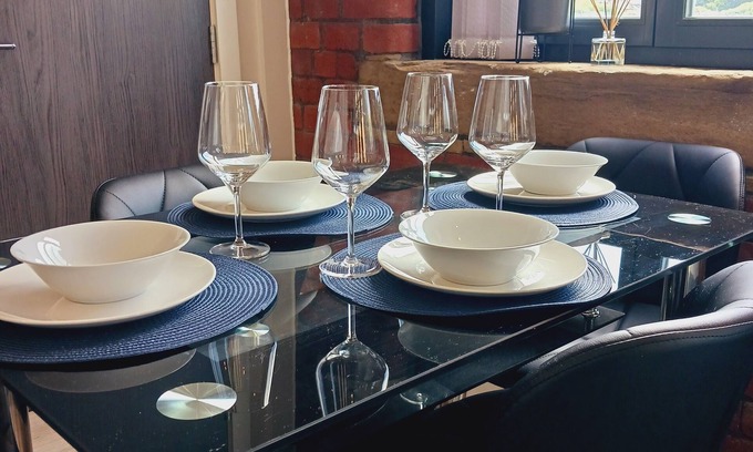 Bliss apartments is the perfect place to relax and enjoy the city. With everything you could need for a home away from home experience. The property is kitted out to a professionally high standard of décor, has two double bedrooms, two bathrooms and a very spacious kitchen, dining and living area. Fitted with a smart T.V free wifi, a kitchen containing an oven, hob, toaster, microwave, dishwasher and fridge/freezer, plus each guest has their own linen and towels provided, so all you need is your luggage! #contractorstays #uniqueapartment #blissapartments