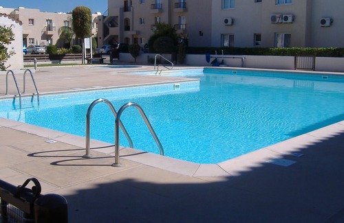 This is a beautiful two bedroom ground floor apartment. It has a large rear patio and garden. It is only 4km from Paphos Airport. The village of Mandria is but a 5 minute walk from the apartment. Set on the ground floor of a modern complex, surrounded by Orange groves, this contemporary apartment is the perfect pad, for a truly special holiday by the Mediterranean Sea. The village has excellent Tavernas and modern restaurants including the fantastic "Fish and Chip restaurant". The apartment is adjacent to the swimming pool and is just 10 minutes from the airport. The bustling tourist resort of Kato, Paphos is a 15-20 minute drive away, whilst the beautiful Troodos Mountains are a leisurely 45 minute drive from the property.