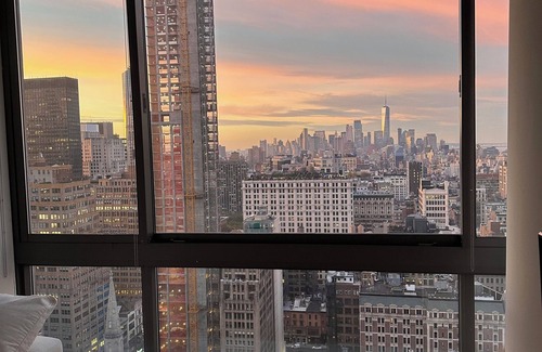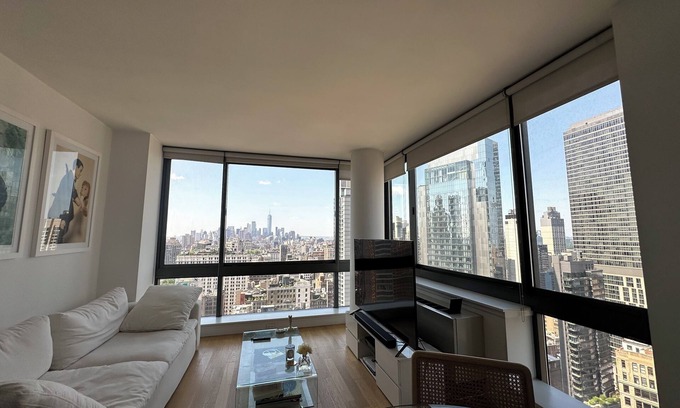 Experience the ultimate New York City getaway in this beautifully designed 2-bedroom, 2-bath apartment located just moments from the iconic Empire State Building. Soaring floor-to-ceiling windows wrap the space, offering sweeping, unobstructed views of Midtown and Downtown Manhattan — the city truly becomes your backdrop. Perfect for both business and leisure travelers, the apartment features two comfortable bedrooms, two elegant bathrooms with premium finishes, and a stylish living area complete with a 65” smart TV for relaxing nights in. Fast Wi-Fi, modern decor, and a prime central location make this home the ideal retreat after a day exploring the city. Whether you’re soaking in the skyline or stepping out into the vibrant streets below, this space delivers an unforgettable NYC experience in both comfort and style.