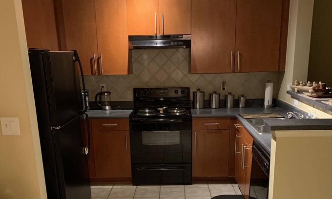 Located 4 miles from the braves stadium and only 20 mins from the Atlanta airport with lots of fine dining in the subdivision. Wake up and grab your favorite drink from Starbucks, pamper yourself at the nail salon, and/or have a delicious dinner of seafood, Mexican, pizza etc. no time to get a haircut before leaving no problem there’s a barber shop located in the subdivision also. There’s a beautiful pool and A large gym on the property, and free garage parking with key fob access.