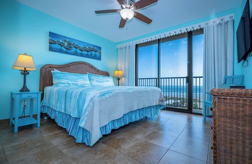 The Isla Grand Beach Resort condo #902 features views of our pools, along with beach views. Condo rooms accommodate up to 6-ppl with 1-king bed, and 2 twin beds in the second unit, and a sofa sleeper in the living room