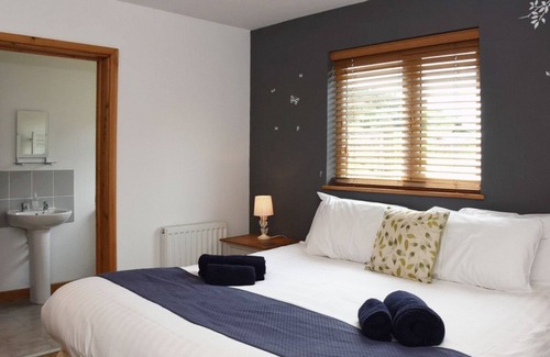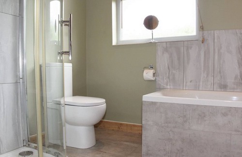 Luxurious lodge with one double and one twin (double by arrangement) with ensuite shower. Bathroom with bath and separate shower. Spacious open plan living area with wood burner and patio doors opening onto large decked verandah with outdoor hot tub.. Enjoying an idyllic setting on the edge of Radnor Forest, Lower Fishpools Lodges offer a spacious, stylish retreat for lovers of the great outdoors and peaceful rural seclusion. Stargazing from your hot tub is a must!