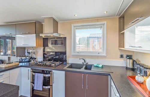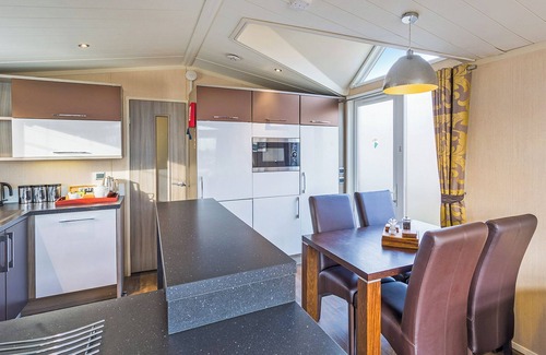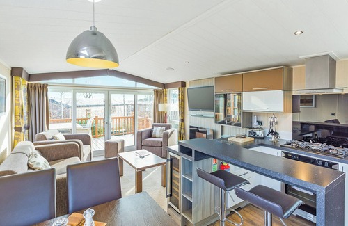 The master double features a handy walk-in wardrobe and has an en suite bathroom with a choice of bath or separate shower. A twin bedroom with 2ft 6in wide beds can accommodate a further two guests which have use of the family bathroom. The spacious open-plan living space is stylish and features a modern kitchen and breakfast bar, along with a dining area leading on to your comfortable living. Dine al fresco on the decking and savour the surroundings. Pets in selected accommodations only.