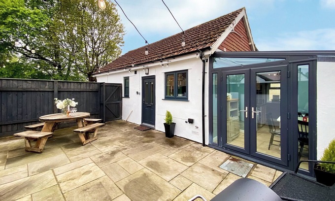 Shower Room: Cubicle Shower, Heated Towel Rail, Toilet. Electric central heating, electricity, bed linen, towels and Wi-Fi included. Back garden with patio and barbecue. 4 small dogs welcome. Private parking for 2 cars. No smoking.. Welcome to H&H-The Old Chippy, a charming bungalow nestled in the heart of Codford, a quaint village located south of Salisbury Plain in the picturesque Wylye Valley of Wiltshire.