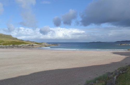 Bedroom 2: Double (4ft 6in) Bed, Single (3ft) Bed (Flexible Sleeping Only). Electric central heating, electricity, bed linen and towels included. Enclosed garden with sitting-out area and garden furniture. Private parking for 2 cars. No smoking. Please note: The property has a natural water supply from a borehole.. Achd is a traditional, detached, croft holiday cottage, standing alone within its own fenced garden area, with many original features, whitewashed stone walls, sloping ceilings and wood panelled walls in the bedrooms imparting much comfort and charm, and located just ½-mile from the village. There is much to do for the outdoor enthusiast (a free slipway for small boat landing is available) with several munros, low level walks, kayaking, sea angling and pony trekking. The sunrise and sunsets are truly stunning and Handa Island, Eas a’ Chual Aluinn and the pristine sandy beaches of Achmelvich, Clachnessie and Sandwood Bay are all within driving distance. Shop, pub and restaurant ½ mile.