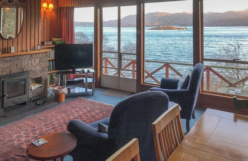 Boasting breathtaking sea views in a glorious setting, this single-storey cottage with wood-burning stove offers space and comfort.. Standing in 4 acres of garden which lead down to a shingle beach, this single-storey, wooden-clad property enjoys a gloriously secluded situation with breathtaking sea views. It offers spacious and very comfortable accommodation, with wildlife often coming right to the door and pine martens feeding just outside the window – otters and seals are regularly sighted in the bay. Sandy beach, shops and restaurants in Gairloch, 5 miles. Boat hire and water sports are available in Badachro Bay (1½ miles) and Gairloch. Shops 5 miles, good restaurant 1 mile.. All on the Ground Floor: