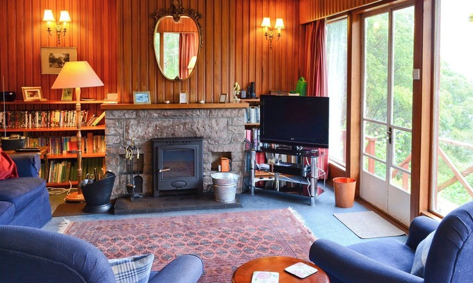 Bedroom 2: 2 x Single (3ft) Beds Ensuite: Bath, Toilet. Oil central heating and electricity (£50per week November-March), bed linen, towels and Wi-Fi included. fuel for wood burner available locally. Garden of 4 acres. Balcony. Garden furniture. Parking. No smoking. Please note: The garden is steep and has a burn.