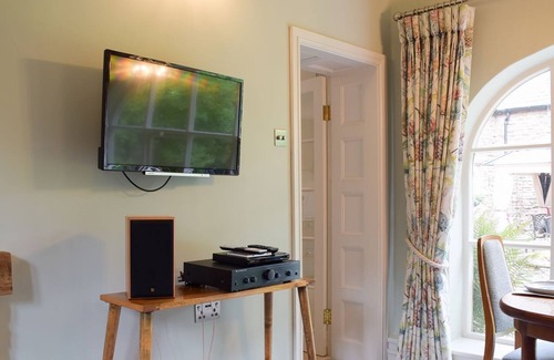 Bathroom: With shower over bath, and toilet.. Oil central heating, electricity, bed linen, towels and Wi-Fi included. Initial logs for wood burner included, remainder at £5 per basket. Welcome pack. Lawned garden with patio, garden furniture, summerhouse and gas barbecue. Use of owners’ garden available on request. 2 small dogs welcome. Bike store. Private parking for 2 cars. No smoking. Please note: There is a fountain in the grounds.. Set on the outskirts of the charming village of Pencombe, this semi-detached cottage was originally part of the coach house and stables for Pencombe Hall, which was built by the Arkwright family in 1862, and is steeped in history and full of character. Coachman’s Cottage is attached to the owners’ property around a courtyard and retains many of the original features. It is set within approximately 1-acre of gardens and enjoys its own private garden and patio to the rear, as well as a fabulous summerhouse, perfect for enjoying barbecues on summer evenings.