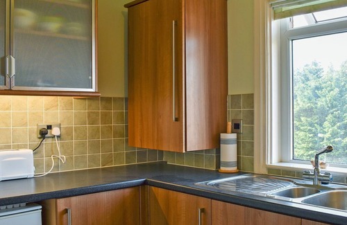 Kitchen: With electric oven, electric hob, microwave and fridge/freezer.