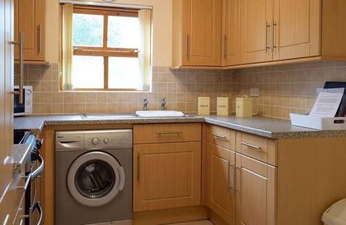 Kitchen area: With electric oven, electric hob, microwave, fridge/freezer and washing machine.