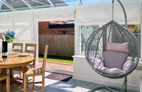 Bathroom: Bath With Shower Over, Heated Towel Rail, Toilet. Gas central heating, electricity, bed linen, towels and Wi-Fi included. Welcome pack. Back garden with sitting-out area and garden furniture. Private parking for 2 cars. No smoking. Please note: There are 5 steps in the garden. Sorry, no children under 8 years old.. This charming two-bedroom modern holiday let in Verwood, Dorset, offers a perfect blend of comfort and style. Featuring an open-plan living area including kitchen and conservatory, the space feels airy and inviting. Large windows bring in natural light, while the conservatory offers a tranquil space to relax. The fully equipped kitchen allows for easy self-catering and both double bedrooms include large built-in wardrobes.