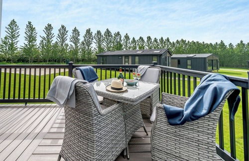 You enter the property into the open plan living area, which is a perfect place to kick back and relax in after a day scouting the area. The kitchen/dining area has everything you would need, and is well presented and fully equipped with plenty of space for food preparation, along with a dining table which seats four people giving a great area to have a family meal, should you not wish to dine at the many superb eateries close by. There are two bedrooms; the master bedroom offers a plush kingsize bed with a walk-in wardrobe and en-suite facilities, the second with twins. Both rooms have luxury linen guaranteeing a perfect night’s sleep. The bathroom presents a shower cubicle, heated towel rail, sink and toilet. Outside you have a gorgeous wrap around decking, which offers a great seating area with fantastic views of the spectacular countryside that surrounds the lodge, giving you a great place to sit out and relax in the summer months whilst enjoying a glass of fizz. Pheasant Lodge truly is a stunning holiday home and guests are guaranteed perfection throughout.