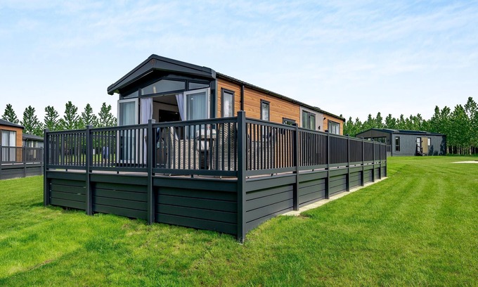 Luxurious lodge retreat which acts a fantastic base for a memorable Yorkshire staycation, locations don’t get much more perfect.. 3 steps to entrance.