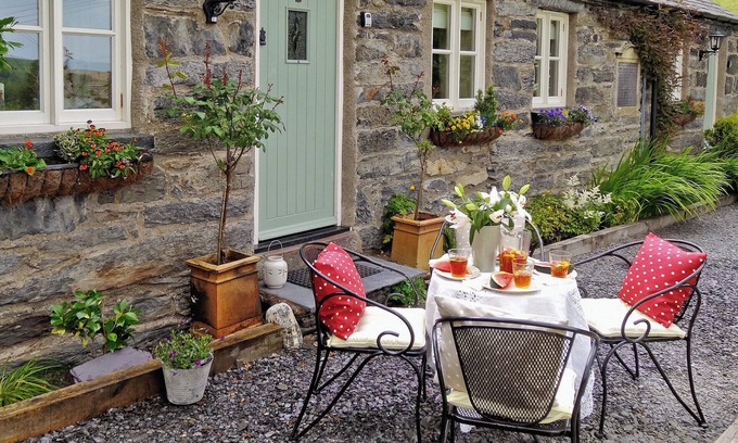Shower Room: Cubicle Shower, Heated Towel Rail, Toilet. Electric underfloor central heating, electricity, bed linen, towels and Wi-Fi included. Initial fuel for multi-fuel burner included. Telephone - unlimited weekend calls (UK only).. Sitting-out area with garden furniture. Lawned garden (shared with other properties on-site). 2 dogs welcome, to be kept on a lead at all times. On road parking, 200 yards away. No smoking.. Originally built as an almshouse in the 19th century, this delightful, terraced, Grade II listed holiday property has been skilfully converted into a bright and welcoming cottage for three people. There is a warming multi-fuel burner in the living room, a well-fitted kitchen (no washing machine) with breakfast table, which is the hub of the cottage, two bedrooms and a shower room. Outside, you will find a table and chairs to relax with a morning coffee overlooking the shared lawned garden and the village of Ysbyty Ifan, which is largely owned by the National Trust.