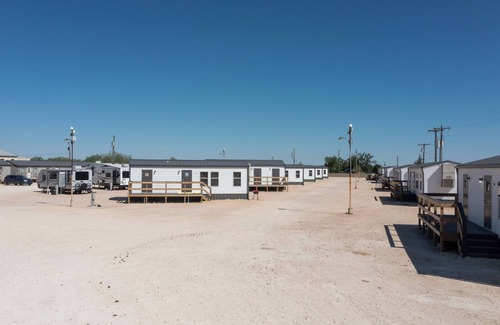 Discover these fabulous corporate or individual 2-bedroom gems in Big Spring. Elite Cabins and RV Park offers these superb apartments that feature a full kitchen with all pots and pans, Free wifi and cable TV. Each park model has 2 bedrooms, both, with a comfortable queen bed, a cozy living room with a futon, and a modern bathroom with a LARGE shower. This is a great place to call home while living and working in the area. AC and heat are of course included and guests can enjoy the clubhouse which provides access to a fitness room, laundry room, pool tables, conference area and a sitting area to just relax. There is a large deck in front of each unit and you can park 3 vehicles right in front of your place. For kids, there is a covered, Pirate Park Playground, which is a great place for them to have fun. These awesome rentals are the perfect property for staying on budget while having a VERY clean place to rest. Please ask about our corporate and long term stay opportunitiesFeel free to reach out to us during your stay, at Elite Cabins and RV Park, we strive to make your stay be the very best!