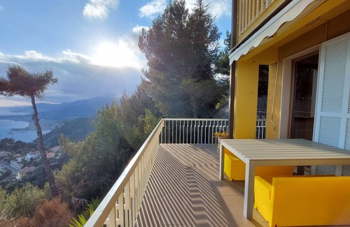 2-bedroom apartment, large terrace overlooking the Côte d'Azur is located in Mortola Superiore. 2-bedroom apartment, large terrace overlooking the Côte d'Azur provides accommodation, featuring Oceanfront, Bedding/Linens, Wellness Facilities, among other amenities. This Apartment features Oceanfront, Bedding/Linens, Wellness Facilities, to make your stay a comfortable one.