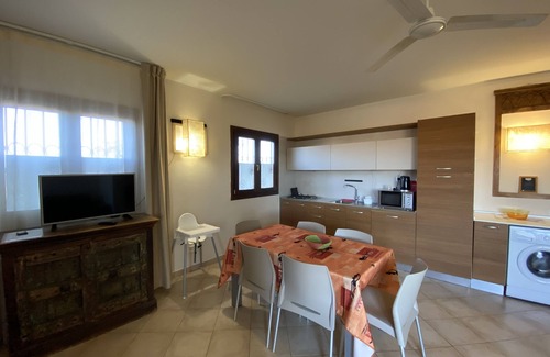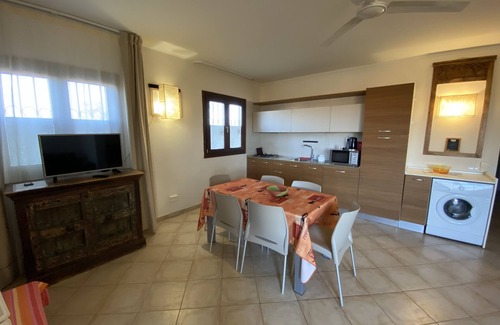 Fully equipped apartment of about 90m2 on the ground floor, set within the Tropical Resort with freshwater pool and sun loungers, 300m from the beautiful beaches of Santa Maria, can accommodate up to 6 people (including the sofa bed).