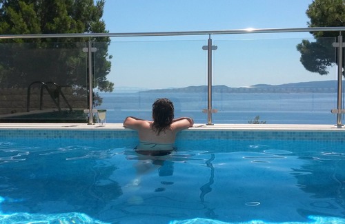 With a large Living Room and separate dining room in addition to the bedrooms, this apartment provides you with plenty of space to spread out in comfort. There are 2 balconies where you can enjoy the beautiful view of the sea. The swimming pool is one level below and shared with 2 smaller apartments. The property is situated 35 km south of Split in the village of Marušici, between the picturesque towns of Omiš and Makarska. The location is perfect for exploring the many natural and cultural attractions in this central Dalmatia region of Croatia. This part of the coast is dotted with beaches having crystal clear water - 2 such beaches are a 10-minute walk from the villa.