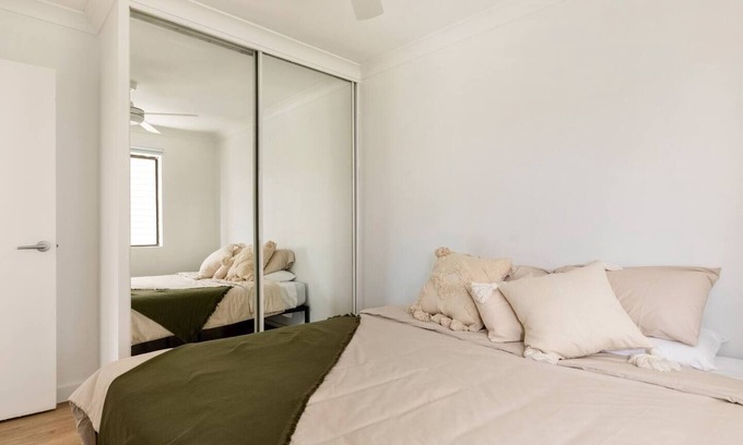 This 2-bedroom apartment has been seamlessly styled to welcome our guests to a modern and relaxing space that feels like home. It is perfect for your business stay, couples on a relaxing holiday, solo adventurers or families requiring separate rooms.
