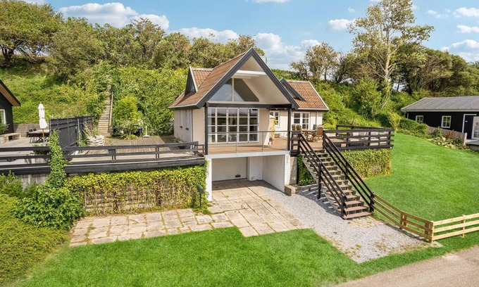Are you looking for a stylish setting for your vacation by the sea? Then this lovely vacation home with a panoramic view of the water would be a very good choice.