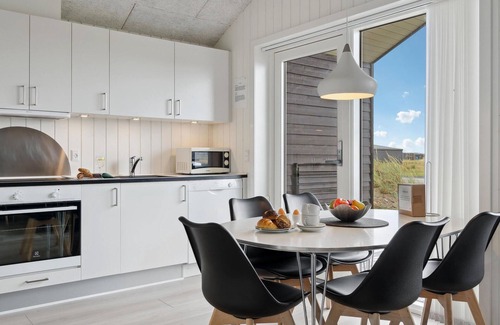 Especially well furnished cottage in a beautiful landscape with a view of the dunes in the distance. You live in the, in the first stage of development realized vacation park Søndervig. The houses are located near the center of the city, a city with the easiest access to the North Sea. Therefore, the city is a renowned seaside resort that does a lot to make its guests feel comfortable. The entrepreneurs know what to do to satisfy all the wishes of the guests. So here you can shop well, eat, drink coffee or be pampered with wellness. Here you really miss nothing. Not far from the vacation park is also the old Ringkøbing. There too you will quickly feel welcome, because the place is one of the best preserved of Denmark. Here you will travel back in time when you see the old, low houses, the red tiled roofs and the muntin windows. The center is unchanged since the 19th century and a good place to start the city tour. You will take a cozy walk through the alleys with cobblestone streets and nice boutiques. There is a special atmosphere in the harbor. At the pier you will enjoy the sun and a beautiful view of the fjord. Hvide Sande is also nice to visit. The harbor is active, many fish are landed here, but still you will always find a fisherman who is happy to have a chat. On both sides of the city you will find activities on and around the water. Here you will feel a lot of nature, here is immense space for everyone, young, old, surfers, enjoyers of life and active sportsmen.