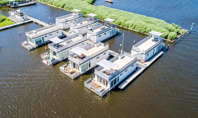 The house is attached to the jetty and therefore cannot be navigated. You can moor your own boats in the nearby leisure harbour. There is a boat lift that you can use for a fee. In the marina you will also find a reception, a water sports shop and a restaurant. You can hire all kinds of water sports equipment from the shop to make your stay fun, especially with children! Think of SUP boards and other fun boards. You can use them on the terraces of the yachts and in the showroom of Kempers Watersport while enjoying a cup of coffee.