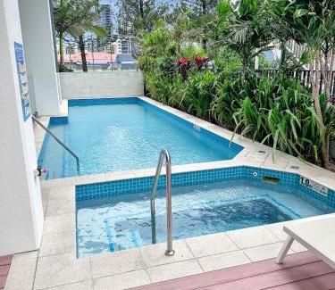 Yes, this Broadbeach apartment has a swimming pool. Check the Facility Overview section for details about the pool and other available facilities.
