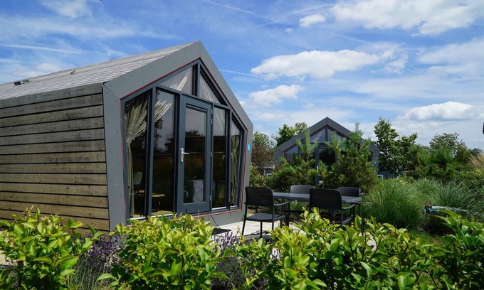 Solo Retreat 4 is a compact chalet suitable for 4 people. The chalet is single-storey and detached and has a garden enclosure. The living/dining room is cosy with a seating area and dining table and a smart TV. The kitchen has a fridge freezer, kettle, filter coffee maker and induction hob. There are two bedrooms, each with a double bed. The bedrooms are partly open-plan. The bathroom has a rain shower, sink and toilet. Outside is a terrace with garden furniture. You can park near the chalet and use the Wi-Fi.