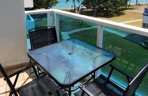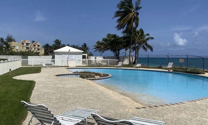 Beautiful beachfront condo with 2 bdrs 1 bath, fully equipped kitchen with hot water, new appliances, BBQ on balcony with ocean and El Yunque views from rooftop patio.