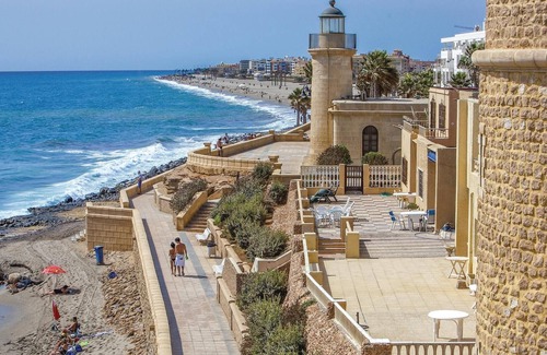 This lovely vacation apartment is located directly on the fine sandy beach of Aguadulce and offers a spectacular view of the Mediterranean Sea and the harbor from the terrace. The centrally located apartment consists of a living room, a kitchenette integrated in the wall and a bedroom with 2 single beds. Through the hallway outside the apartment you can reach the second bedroom with a cozy double bed. In just a few minutes walk, you can reach restaurants and bars and also the local shopping center or the water park, where you can spend an adventurous day with the family, are not far.