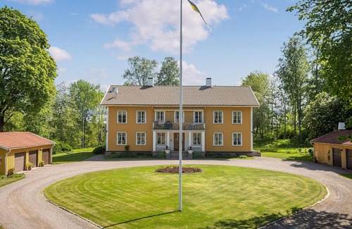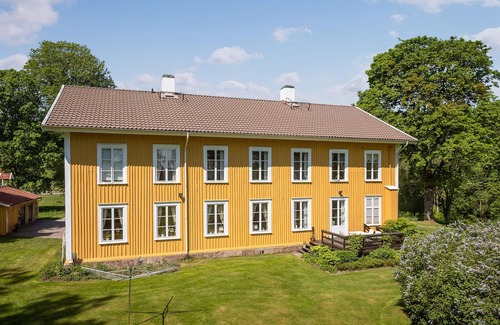 This bright and cosy ground floor flat is part of a beautifully situated manor house with a history dating back centuries with notable families such as Ribbing and Fleetwood. Historic features such as beautiful tiled stoves and original woodwork create a cosy atmosphere. Enjoy these with harmonious meals, browse through the library for an interesting book, use the music room to make music together and make yourself comfortable for stimulating conversations in the inviting living room.
