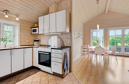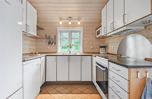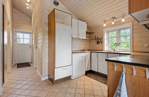 Bright and appealing, this idyllically situated house welcomes you and offers everything you need for a relaxing holiday with the whole family. Wake up to a beautiful view of the countryside. Look forward to cosy evenings when you return from your adventures, make yourself comfortable at the dining table with a beautiful view of the outdoors, let dinner flow seamlessly into a games evening or chat for a long time in convivial company.