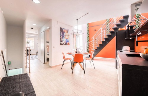 In the center of Santa Pola welcomes you this tasteful apartment with great roof terrace.