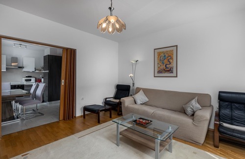 Spend a relaxing time in the bright and appealing apartment, which welcomes guests just a short drive from the beach, ideal for relaxing days by the sea and exploring the surrounding area. Return to the apartment after an eventful day, make yourself comfortable in the kitchen and chat for a long time over a delicious meal.
