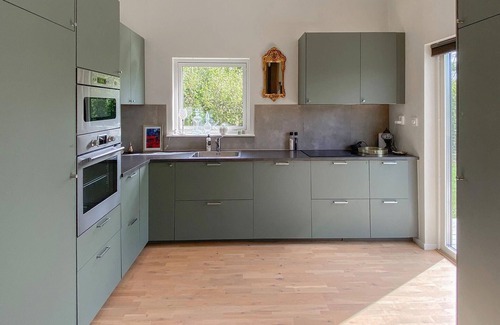 This cosy house will enchant you with its exquisite interior design. A warm wooden look, a cosy sofa and a successful mix of modern and nostalgic furniture make your stay as pleasant as possible. The floor-to-ceiling windows also let in plenty of warm daylight. Relax here while listening to music, streaming your favourite series or preparing tasty meals in the modern kitchen.