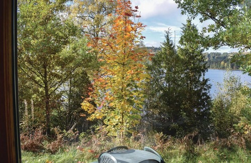 The lakefront property has the Isaberg ski resort in view, so beautifully located is this wonderful vacation home. You live near Hestra in Småland. It is only 30 meters to the lake shore, where there is a beautiful sandy beach for swimming. There is also a boat and a jetty. You can also enjoy a beautiful view of the lake from the covered terrace and the living room. An open fireplace also provides for coziness. To bedroom 1 there is only a curtain, here is also the entrance to the bathroom. You can use the good hiking trails here, ice fishing and see High Chaparral 30 km away. Isaberg is home to a ski resort, a moose park, a fairy tale forest and a golf course beautifully integrated into the landscape. You can certainly shop well in Värnamo, 41 km. In the house you can hear the traffic on road 151 and from a railroad.
