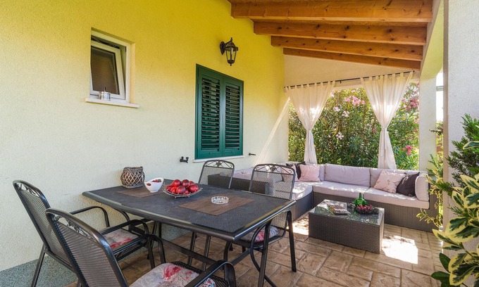This cozy and bright vacation home is located in the suburbs of Split. Here you can expect two bedrooms, bathroom, spacious living room and kitchen, which leads to the spacious terrace. For cozy barbecue evenings and social get-togethers, a barbecue is available on the fenced property and children are also provided. Visit the city of Split and admire the imposing Diocletian's Palace, stroll through the old town, explore the park Marjan and finish your tour on the famous waterfront in one of the restaurants and taverns with delicious specialties of Dalmatia.