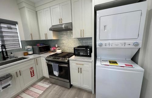 2-bedroom guest house in cool Huntington Beach with AC, WiFi is located in Huntington Beach, just 9 miles from Fashion Island and 12 miles from Disney California Adventure. Housed in a building dating from 2024, this vacation home is 12 miles from Anaheim Convention Center and 13 miles from Disneyland. Free Wifi is available throughout the property and South Coast Plaza is 5.3 miles away. The air-conditioned vacation home consists of 2 bedrooms, a living room, a fully equipped kitchen with a dishwasher and a coffee machine, and 2 bathrooms with a walk-in shower and bathrobes. Towels and bed linen are provided in the vacation home. For added privacy, the accommodation features a private entrance. Knotts Berry Farm is 14 miles from the vacation home, while Queen Mary, Long Beach is 22 miles away. John Wayne Airport is 6.2 miles from the property.