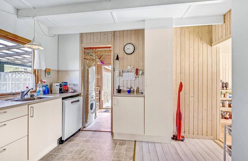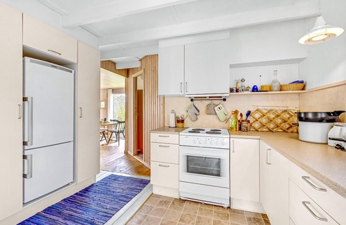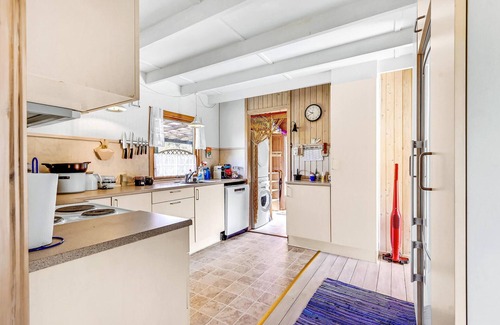 Just a short walk from the sea, this classic Danish wooden house with a private garden is perfect for a relaxing family holiday. The house impresses with its open, warm interior and many lovely wooden elements. Large windows provide a pleasant amount of light and create an inviting atmosphere. Spend sociable hours enjoying meals together or board game evenings while the children run around outside in the playhouse.