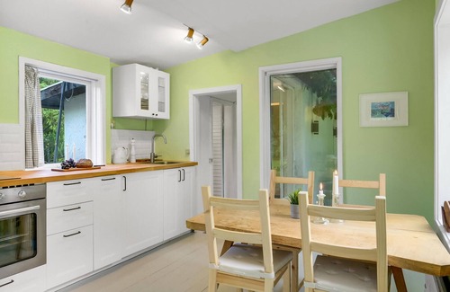 This simple and compact holiday home near Tisvildeleje Strand offers you a classic summer cottage atmosphere and is ideal for a small family or two couples looking for a relaxing break. The lovingly decorated living room of the house is furnished with stylish furniture and exudes a cosy atmosphere. The house also has an open-plan kitchen with a dining table where you can prepare and serve your meals.