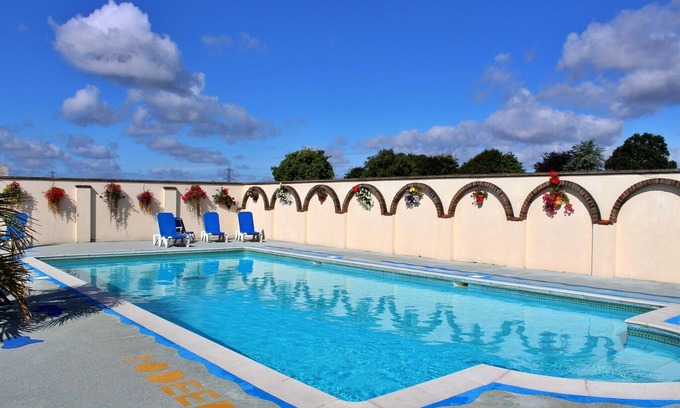 Yes, this Wimborne house has a swimming pool. Check the Facility Overview section for details about the pool and other available facilities.