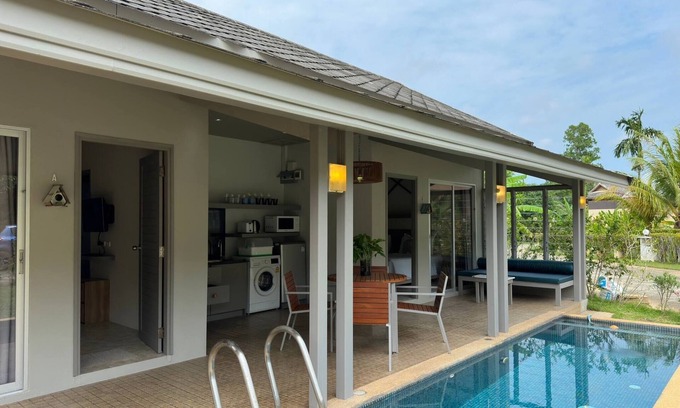 Experience the ultimate in relaxation and comfort at this stunning Sakhu villa, perfectly situated in the heart of Thailand. This beautiful property boasts spacious guestrooms, a private outdoor pool, and a fully equipped kitchen, making it the perfect retreat for families, couples, and solo travelers alike. Enjoy the warm Thai sun on your sunbed, or gather around the BBQ for a delicious outdoor dining experience. With central heating, Wi-Fi, and a range of modern amenities, you'll feel right at home. The villa also features a drying room, dining room, and common area, perfect for socializing with friends and family. Pets are welcome, and smoking is allowed in designated areas. Take a dip in the private pool, or simply lounge by the poolside and soak up the sun. With a washing machine, ironing board, and safe deposit box, you'll have everything you need to make your stay truly unforgettable.