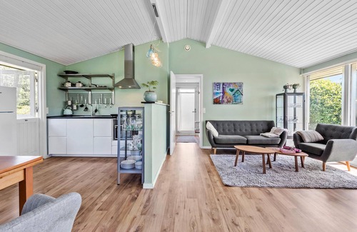 In an idyllic location, not far from Roskilde Fjord, this compact holiday home offers you the ideal retreat for a relaxing break with the whole family. With its classic summer house style exterior, it impresses with a colourful, stylish ambience that invites you to relax and enjoy.