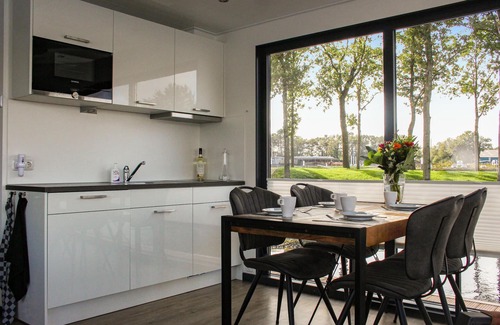 This houseboat with 84 m² of living space is ideal for a relaxing stay of four people. This is the largest houseboat offered in the Benelux. There are two bedrooms, each with a comfortable double bed, a modern living room with large windows and attractive gas fireplace. The open kitchen is fully equipped with dishwasher, filter coffee maker, microwave and 2-burner induction hob. The bathroom has a level shower, heated towel rail, sink with mirror, and closet. Opposite the bathroom is the separate toilet. The rooms in this houseboat are equipped with infrared panels that create a wonderful radiant heat.