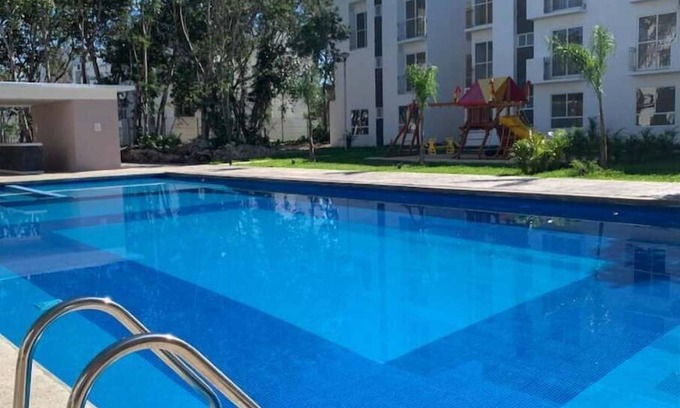 Yes, this Cancun apartment has a swimming pool. Check the Facility Overview section for details about the pool and other available facilities.