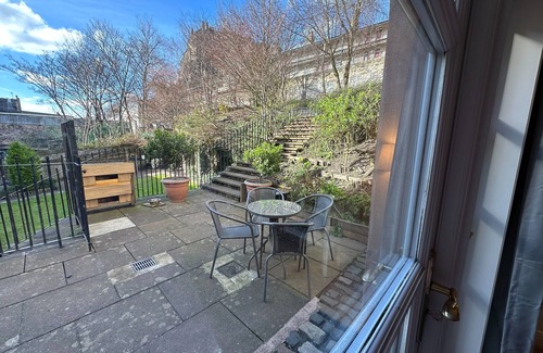 Set in private grounds alongside Edinburgh Castle mound, this delightful ground floor apartment and garden offers stunning views of the Castle in one of the city's best locations. In the heart of the Grassmarket, which features bistros and craft shops, Castle Wynd South offers bright and modern ground floor accommodation – it also boasts its own outdoor terrace and shared garden. Sainsbury Local is just a few minutes walk and the Royal Mile and major Edinburgh attractions are around the corner, so you can enjoy all the city sights from your own comfortable and very central base. The Castle itself is on your doorstep: take the shortcut straight up the Castle Wynd South steps to reach the Castle gates.