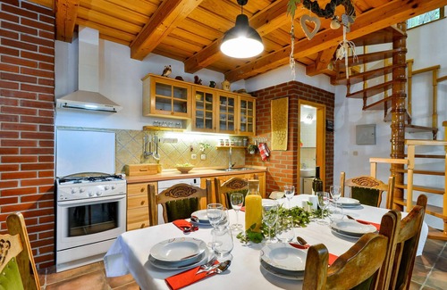 Here you will find an ideal holiday home for relaxation and escape from everyday life, surrounded by greenery and fields and beautiful vineyards and orchards. The house is equipped with everything you need for a carefree holiday. The living space is divided into two bedrooms, a bathroom, an open loft and a living room with kitchen. Thanks to an activity room, you are guaranteed not to get bored.