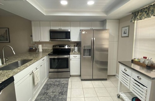 Fully Furnished 2 Bed/2 Bath/1 Car Carport Villa In Seven Springs Golf and Country Club - Availabl For The 2023 Season For The Vacation Stay Of Your Dream! Beautifully furnished and updated. 2 bedroom, 2 full baths! Nearly 1, 200 sq ft. Gorgeous kitchen with stainless appliances, granite countertops, tons of cabinets, a coffee/tea station and tons of light truly makes this the heart of the home. Stackable W/D in kitchen closet for convenience! The large living and dining area are well appointed and have all the things you'll want for a comfortable stay. The master bedroom is roomy even with the queen bed with a cute work station, walk in closet, oversized master bath with walk in shower! Use the sliding glass doors to go out to the enclosed Florida room. You can access the peaceful brick patio out back, overlooking the 15th hole tee box of the executive golf course! This property is located in the lovely, gated golf course community with community pool and clubhouse, restaurant, pro shop, fitness center and more! Just minutes from great shopping and Trinity hospital. Less than one hour to Tampa and Busch Gardens or the famous beaches of Clearwater, Caladisi and St. Petersburg. Rent includes water, sewer, trash, cable, internet and electric. It does Not include the Social Membership. Security deposit of $500. Tenant application of $40/each and Hoa application with fees are required. There is a $150 cleaning fee. Landlord prefers non smokers and no pets. Furnished And Updated 2/2/1 Car Carport Villa! Open Floor Plan Just Under 1200 Sq Ft Of Living Area. Great Kitchen Overlooks Dining and Family Room Featuring Granite Counter Tops, Stainless Steel Appliances, Real Wood Cabinets and Can Lighting. Split Bedrooms Add Privacy, Large Master W/Walk In Closet And Sliders Out To The Covered/Window Enclosed Lanai. Stacked W/D Inside! Just Off The Lanai Is A Spacious Brick Patio Overlooking The Tee Box On Hole 15 Of The Executive Course. All Of This In A Beautiful Gated Golf Course Community With Driving Range And 2 Golf Courses. Just 1 Traffic Light From The New Village At Mitchell, Mitchell Ranch Plaza, Walmart and Medical Center Of Trinity Hospital. Utilities Are Included In Rent - Water, Sewer, Trash, Internet, Cable, 1St $100/Mo Electric (Over $100/Mo Is A Tenant Expense), Lawn Service - But The Social Membership Is Not Included. This Is A Great Place To Spend Your Florida Season!!! Please Call For Details And Availability Houzlet publishes listings on Vrbo; which in turn, allows tenants to instantly rent seasonal rentals. Houzlet’s properties are managed by licensed real estate agents. Although the property is an instant rental, it’s possible there can be another pending application. If the home is not available, we can offer you another suitable option or you can cancel for free.