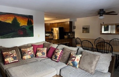 76-I Recently Upgraded 2 bedroom/ 2 bath Condo with Beautiful Views of Gore Mountain! This unit has just been freshly painted, re-carpeted and stylishly decorated. It features a generous living space with wood-burning fireplace, TV, and ample seating. The windowed dining area has an oversized table with seating for six. There is also an outdoor deck off the living area with a new Weber gas grill and seating. The kitchen has new high-end stainless steel appliances and any cooking utensils you could need. There is one full bathroom downstairs, an entryway with space for skis and ski gear, and a new washer/dryer. Upstairs you will find two large, updated bedrooms with new mattresses and bedding and another full bath with a luxurious whirlpool tub. This unit is the perfect getaway in the Adirondacks!